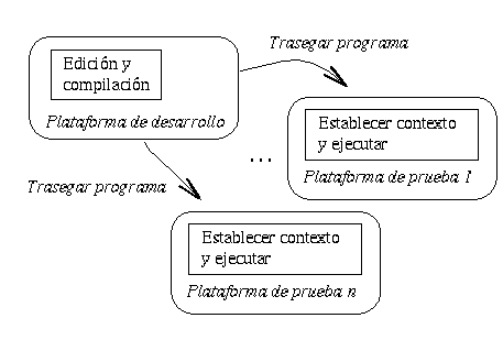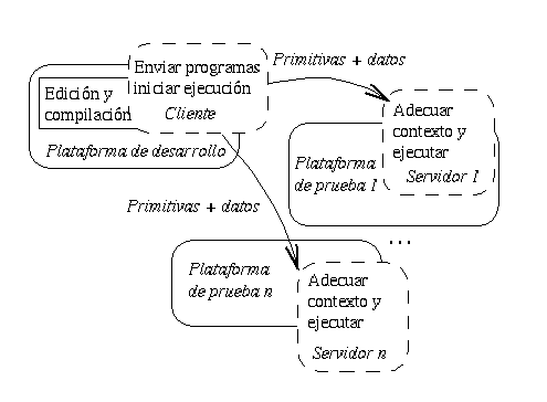 Situando un servidor adecuado en cada plataforma de prueba, se puede realizar la operación de envío de programas, adecuación de contexto y ejecución, desde un único cliente situado en una plataforma de desarrollo.